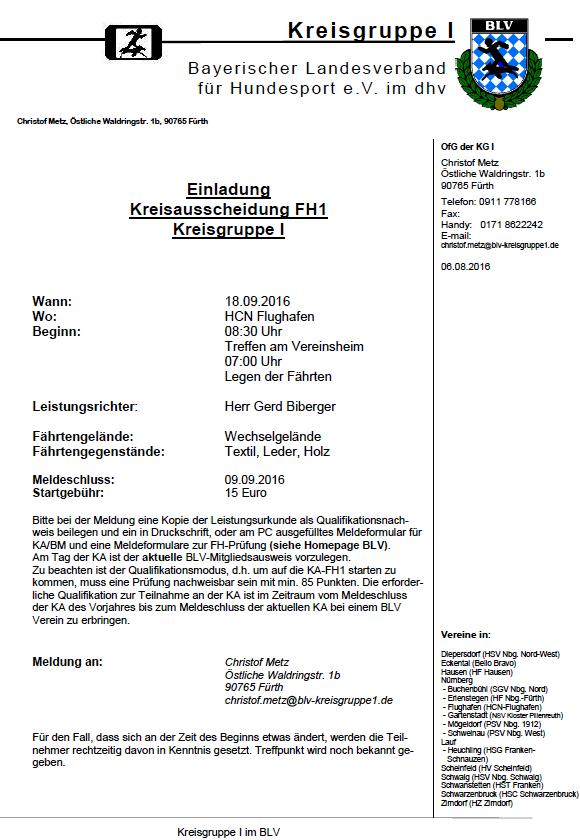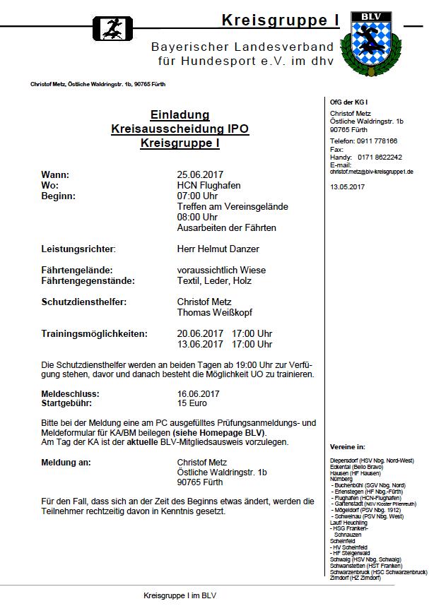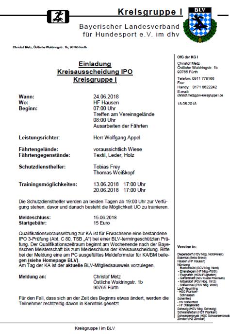 Leistungsrichter: Dietmar Seidlitz Prüfungsleiter: Dieter Brandt Meldung: Heike Ritthammer, Tel. 09122 / 887701