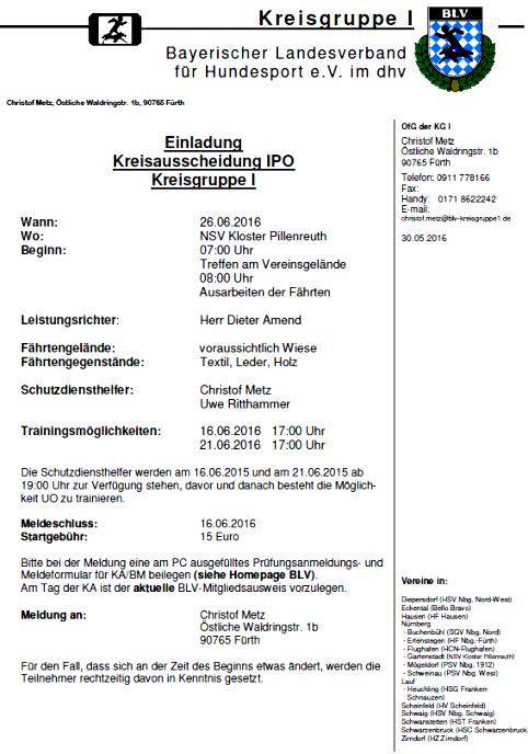 Leistungsrichter: Holger Lumbe Prüfungsleiter: Dieter Brandt Meldung: Heike Ritthammer, Tel. 09122 / 887701