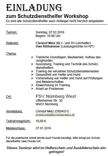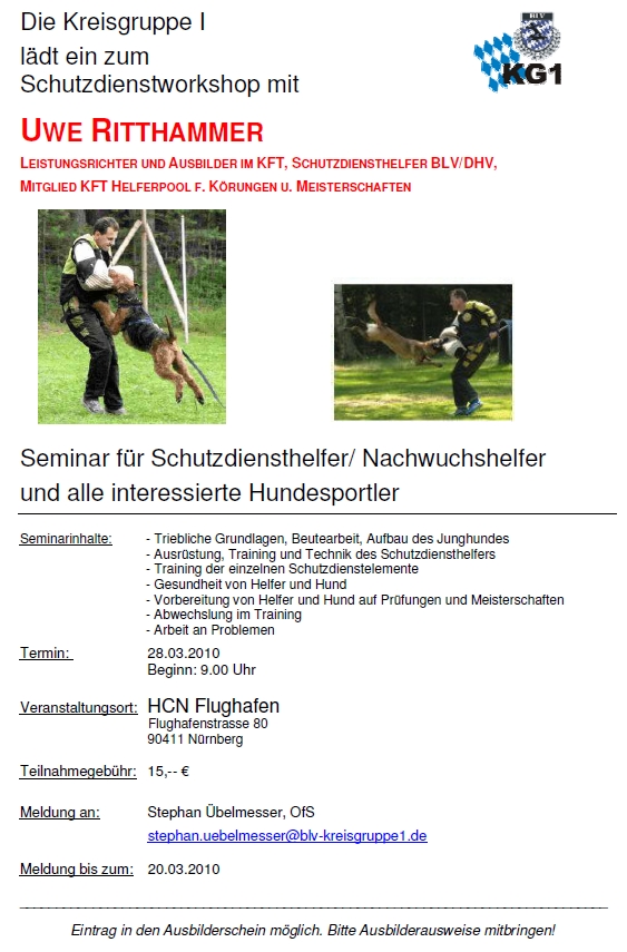 Seminar “Aufmerksamkeit” in Unterordnung und Schutzdienst in Nürnberg-Schwaig, Referent: Uwe Ritthammer