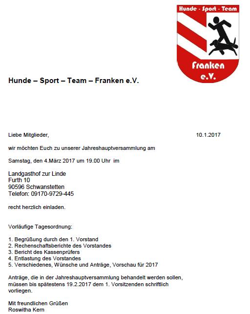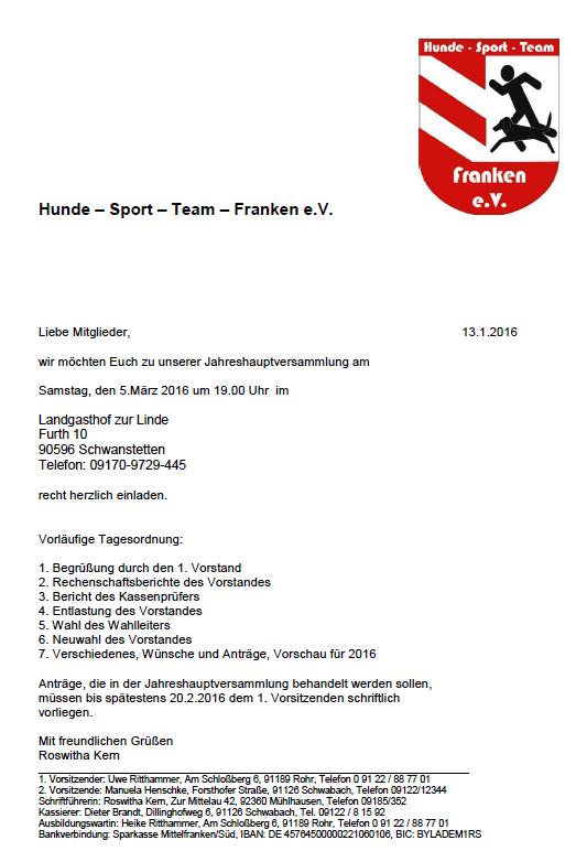 Anträge, die in der Jahreshauptversammlung behandelt werden sollen, müssen bis spätestens 27.02.2010 dem 1. Vorsitzenden schriftlich vorliegen.